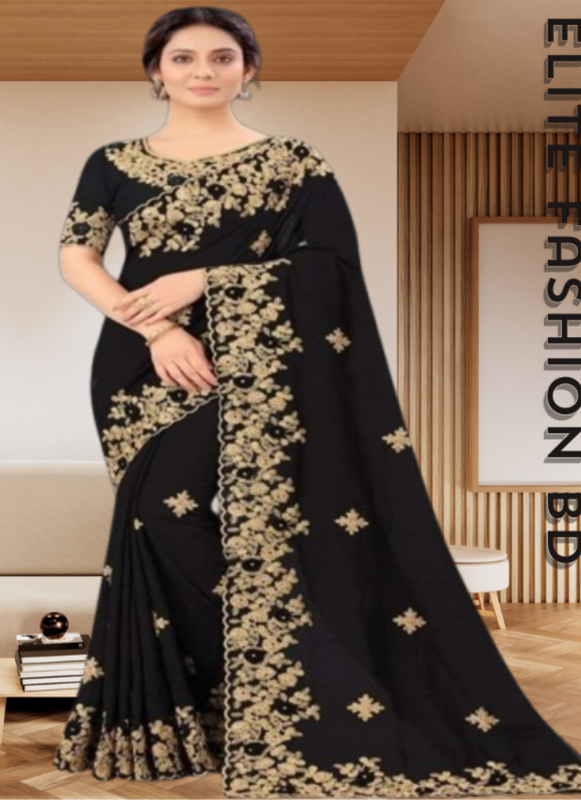 এক্সক্লুসিভ ইন্ডিয়ান ওয়েটলেস জর্জেট কালো এমব্রয়ডারি করা পার্টি শাড়ি