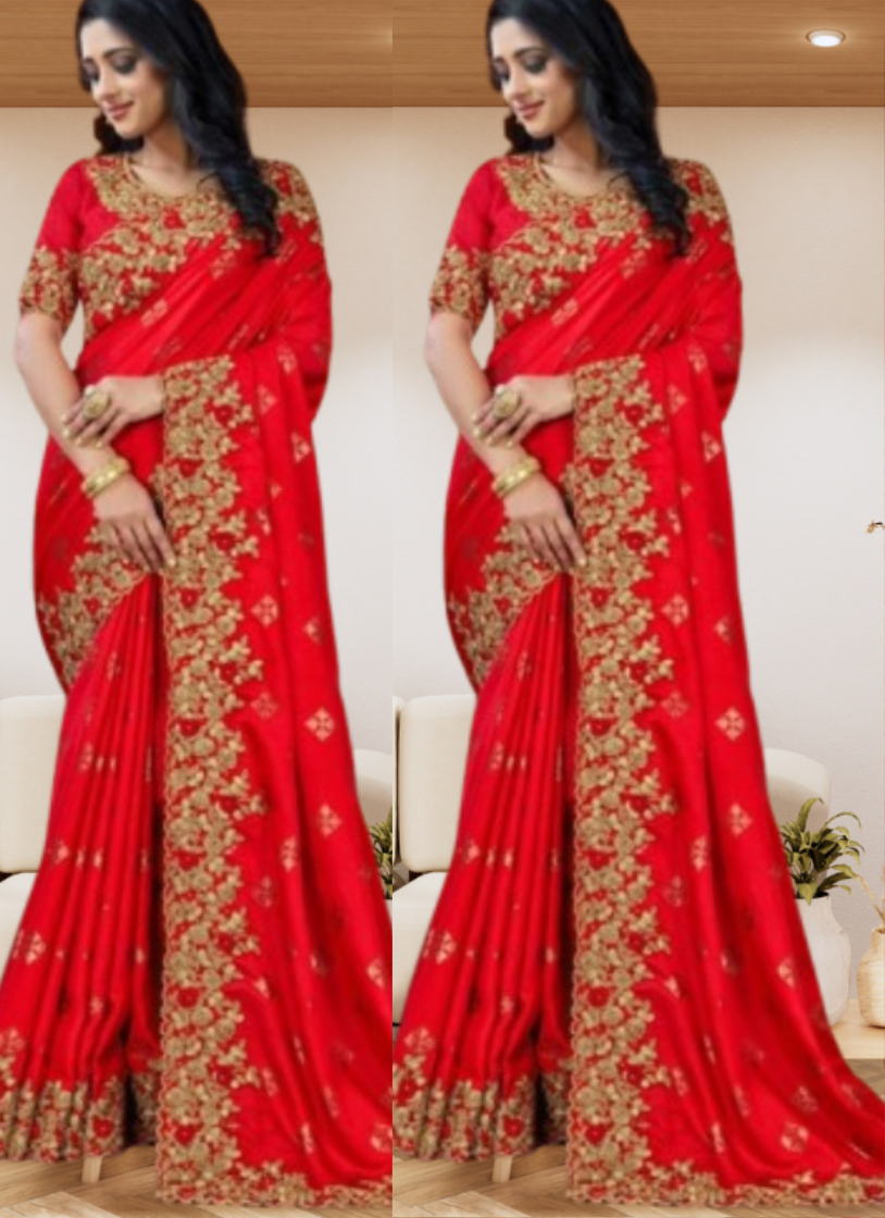 এক্সক্লুসিভ ইন্ডিয়ান ওয়েটলেস জর্জেট লাল এমব্রয়ডারি করা পার্টি শাড়ি